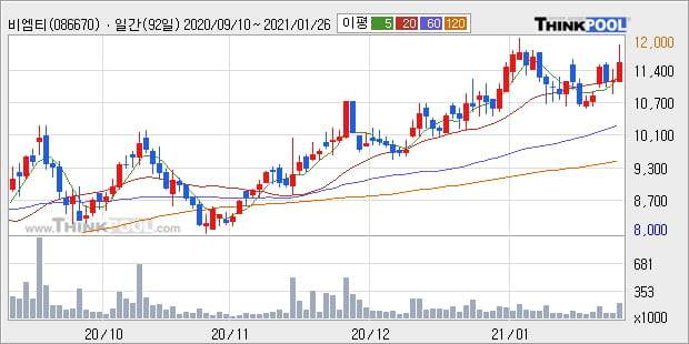 '비엠티' 52주 신고가 경신, 단기·중기 이평선 정배열로 상승세