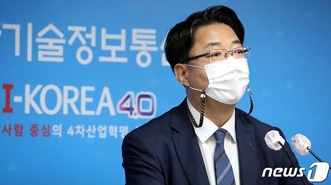 (세종=뉴스1) 장수영 기자 = 이승원 과학기술정보통신부 정보통신산업정책관이 지난 25일 세종시 어진동 과기부 브리핑실에서 '제4차 5G+ 전략위원회 개최, 5G+ 전략 2021년도 추진계획 및 MEC 기반 5G 융합서비스 활성화 방안'을 설명하고 있다. 2021.1.26/뉴스1