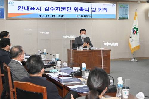 부산 해운대구(구청장 홍순헌)는 25일 구청 3층 중회의실에서 '안내표지 검수자문단 위촉식'을 가졌다.