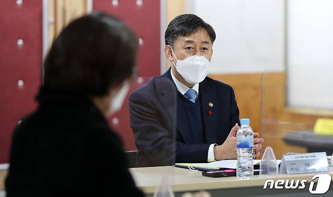 (서울=뉴스1) 박지혜 기자 = 양성일 보건복지부 1차관이 26일 오후 서울 종로구 서울노인복지센터에서 노인복지기관 종사자들과 만나 간담회를 갖고 있다.