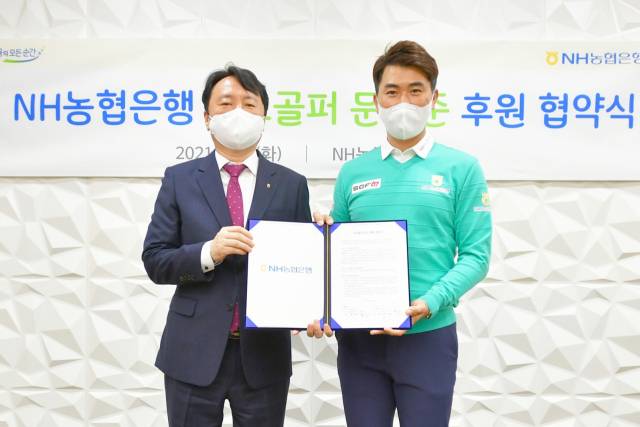권준학 NH농협은행장과 문경준은 26일 서울 중구 NH농협은행 본사에서 열린 후원 협약식에서 계약서에 서명했다. 협약에 따라 문경준은 앞으로 2년간 모자와 의류에 NH농협은행 로고를 부착하고 대회에 출전하며, NH농협은행 주최 행사에도 참석할 예정이다.