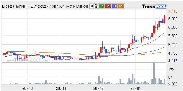 '네이블' 52주 신고가 경신, 단기·중기 이평선 정배열로 상승세