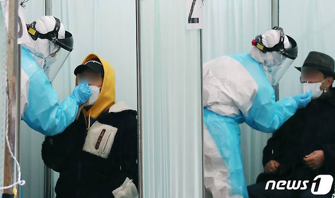 (대전=뉴스1) 김기태 기자 = 대전시는 IM선교회가 운영하는 대전 서구 갈마동에 위치한 교회 내 오예스쿨 CAS기독 방과후학교 관련된 125명에 대해 주소지 보건소에서 코로나19 검사를 받으라고 통보했다. CAS는 IM선교회가 운영하는 시설이다. 26일 오전 대전 서구보건소에 마련된 선별진료소에서 시민들이 검사를 받고 있다. 2021.1.26/뉴스1