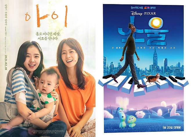 지난 20일 개봉한 디즈니·픽사 애니메이션 영화 '소울'(피트 닥터·캠프 파워스 감독)에 이어 설 연휴 개봉을 앞둔 김향기, 류현경, 염혜란 주연의 휴먼 영화 '아이'(김현탁 감독, 엠씨엠씨 제작)까지 새해 극장가에 위로와 치유의 따뜻한 메시지로 온기를 더하는 작품들이 찾아온다.