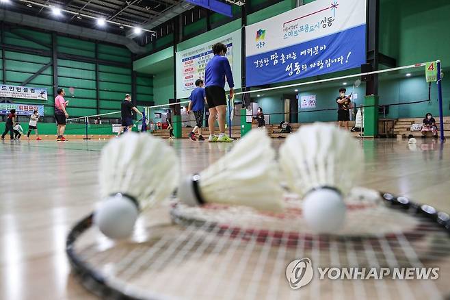(서울=연합뉴스) 황광모 기자 = 26일 오후 서울 성동구 고산자로 금호스포츠센터에서 시민들이 보건 당국이 정한 거리 두기와 마스크 쓰기 등 코로나19 방역 수칙을 지키며 배드민턴을 치고 있다. 2021.1.26
