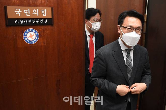 [이데일리 노진환 기자] 김진욱 초대 고위공직자범죄수사처장이 26일 오후 서울 여의도 국회에서 김종인 국민의힘 비상대책위원장실을 예방한 뒤 위원장실을 나서고 있다.