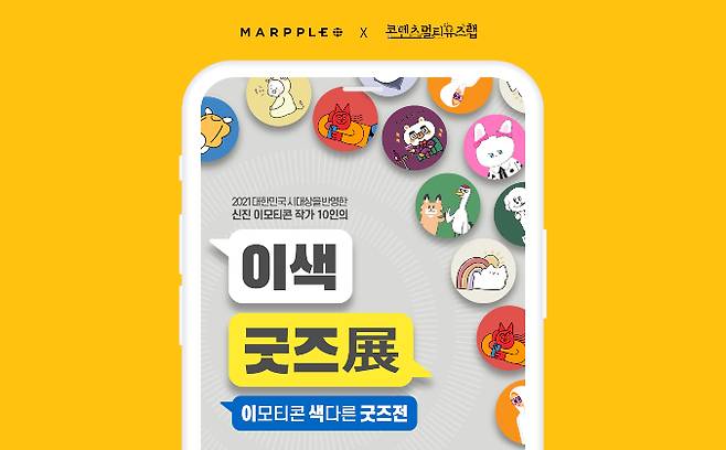 이번 기획전에 참여하는 작가들은 작년 말까지 한국콘텐츠진흥원의 콘텐츠멀티유즈랩이 진행한 '이모티콘 클래스 & OSMU 상품화 프로그램' 교육에 참여한 디자이너다. 참가자들 중 우수 캐릭터를 제작한 상위 10명을 선정해 마플샵이 이들의 이모티콘 캐릭터 디자인 (IP)을 활용한 특별 기획전을 진행하는 방식이다.