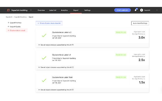 그동안 오토라벨링은 일반적인 사물(common objects) 100개에 한정돼 해당 범위를 벗어나는 물체나 제품에 대해서는 라벨링 작업을 자동화하는 것이 불가했다는 것이 회사측 설명이다. 하지만 이번에 '커스텀 오토라벨링' 기능이 새롭게 도입되면서 별도의 개발자 지원 없이도 스위트 내에서 클릭 몇 번으로 사용자 고유의 데이터 라벨링 작업을 자동화할 수 있게 됐다는 설명이다.