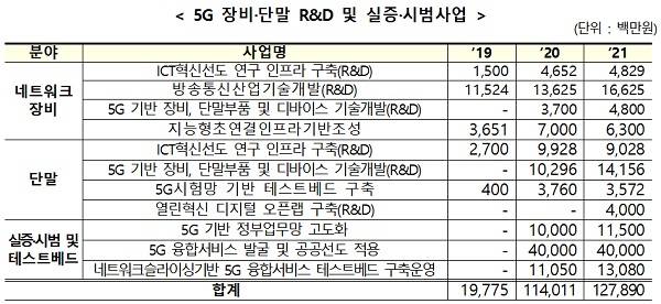 R&D 및 실증·시범사업에 지난 2019~2020년 1338억 원 투자에 이어, 올해에도 5G 공공선도 적용사업 등 1279억 원을 투자할 예정이다.