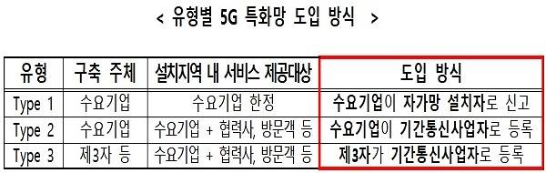 ‘지역(로컬) 5G 사업자’의 유형을 구축주체와 서비스 제공대상으로 구분, 유형에 따라 자가망 설치자로 신고 또는 기간통신사업자 등록의 방식으로 5G 특화망을 도입한다.