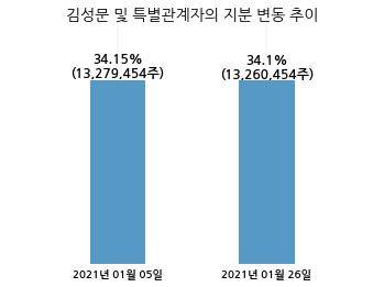 디아이씨는 김성문 및 특별관계자의 지분율이 34.15%에서 34.1%로 변동했다고 26일 공시했다.