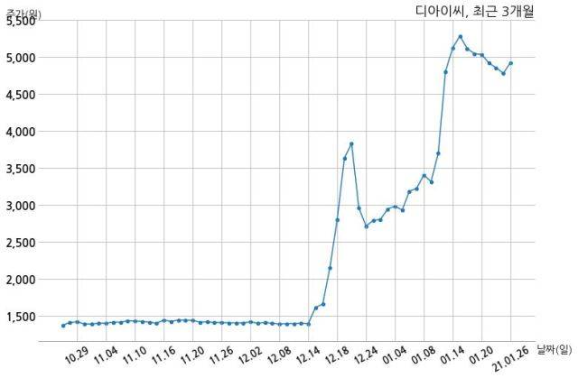 한편, 디아이씨는 장 마감 이후 해당 기업공시를 발표했으며 오늘 종가가 4,920원, 거래량은 5,639,821주로, 직전 거래일 대비 145원(+3.04%) 상승했다.