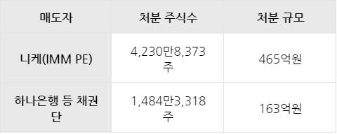 26일 투자은행(IB) 업계에 따르면 IMM PE가 대한전선 인수 목적으로 설립한 니케(NIKE)는 지난 25일 4,230만주를 시간외매매(블록딜) 형태로 처분했다. 주당 가격은 1,098원으로 총 처분 규모는 약 465억원이다. 이날 하나은행 등 대한전선의 채권단도 1,484만주를 블록딜 형태로 처분했다.