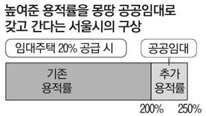다른 선택지인 임대주택 20% 공급안의 상황은 더 심각하다. 적용받는 용적률은 250%로 늘어나지만 조합은 여기서 80% 몫만 가져간다. 결국 인센티브를 받기 전과 동일한 200% 용적률만 챙기는 셈이다.