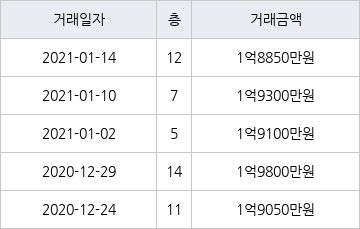 국토교통부 실거래가 공개시스템에 따르면 지난 2021년 1월 10일 인천광역시 연수구 동춘동 해송마을동남아파트 7층 전용면적 52㎡형이 1억9300만원에 거래됐다. 지난 2021년 1월 14일 같은 면적형인 12층 물건이 1억8850만원에 실거래된 것과 비교해 450만원 높은 가격이다.