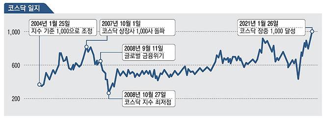 이날 코스닥 지수는 개장과 함께 1000을 돌파하면서 장중 1007.52까지 올랐지만 이후 하락세로 반전했다.