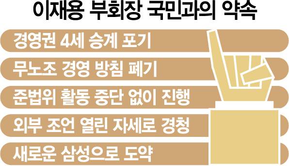이재용 삼성전자 부회장이 26일 임직원들에게 보낸 메시지를 통해 국민과의 약속을 반드시 지키고 투자와 고용 등 기업의 본분에도 충실해야 한다고 당부했다.