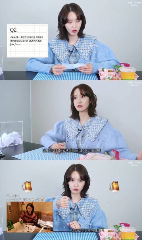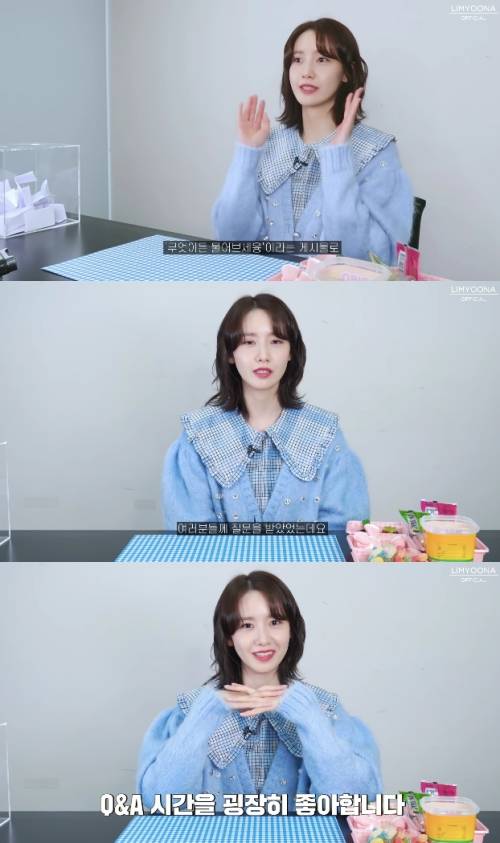 지난 25일 윤아의 유튜브 채널 ‘Yoona's So Wonderful Day’에는 ‘TMI 파티. 무엇이든 물어보세용”이라는 제목으로 영상이 게재됐으며, 해당 영상에서 윤아는 팬들에게 미리 받아둔 질문들에 대답하는 시간을 가졌다.