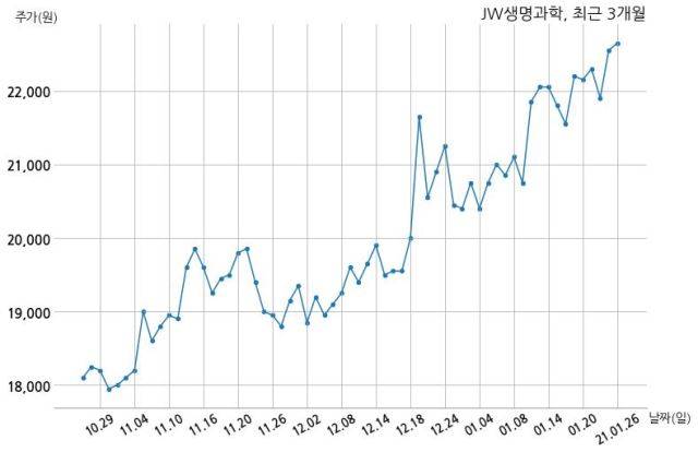 JW생명과학은 베어링자산운용주식회사 및 특별관계자의 지분율이 0%에서 5.17%로 변동했다고 26일 공시했다. 이번 지분 변동은 경영참가목적이 없는 단순 투자목적에 의한 것이다. 한편, JW생명과학은 장 마감 이후 해당 기업공시를 발표했으며 오늘 종가가 22,650원, 거래량은 440,287주로, 직전 거래일 대비 100원(+0.44%) 상승했다.