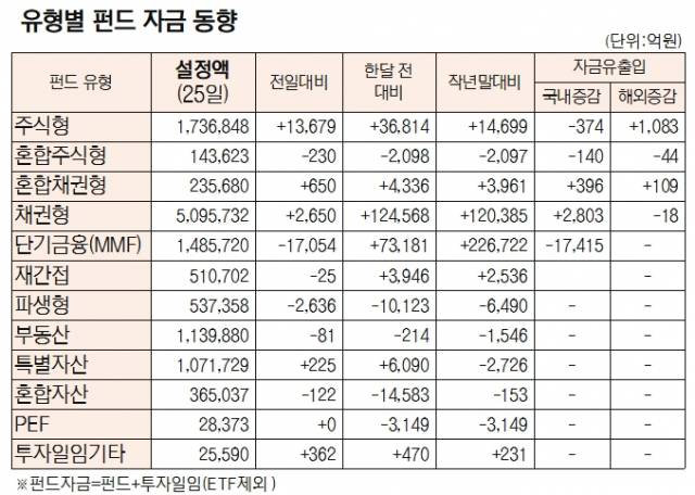 [표]유형별 펀드 자금 동향(1월 25일)
