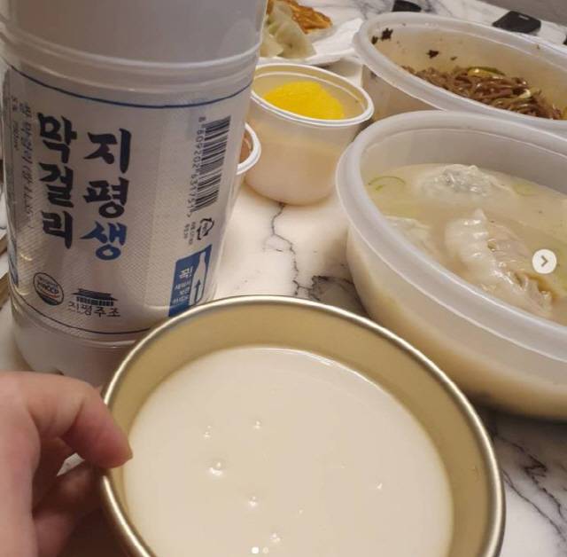 심은진은 26일 인스타그램에 "비가 온다.. 비오는 날엔 역시 막걸리지! #전엔 막걸리 #맛이가 있다"라는 글과 함께 사진을 올렸다.