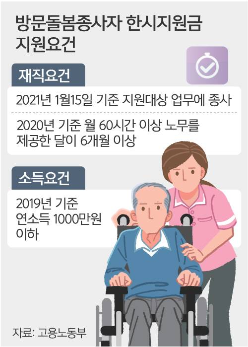 정부가 생계에 어려움을 겪는 저소득 방문돌봄 종사자 지원에 나섰지만, 현실성 없는 지급요건을 내세워 논란이 되고 있다. 김씨처럼 일자리를 잃은 사람에게 지원금은 ‘그림의 떡’이다.