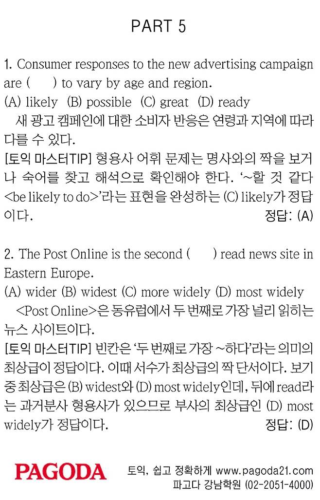 [파고다 강남 스타토익 RC유나신] PART 5
