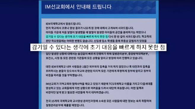 "처음 발열이 있었을 때 감기일 수 있다고 생각해 초기 대응을 못했다"며 사과했습니다.