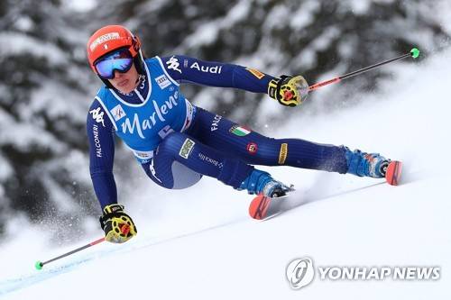 epa08966245 Federica Brignone of Italy in action during the Women's Giant Slalom race at the FIS Alpine Skiing World Cup in Kronplatz, Italy, 26 January 2021. EPA/ANDREA SOLERO