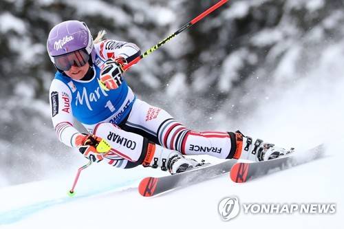 epa08966241 Tessa Worley of France in action during the Women's Giant Slalom race at the FIS Alpine Skiing World Cup in Kronplatz, Italy, 26 January 2021. EPA/ANDREA SOLERO