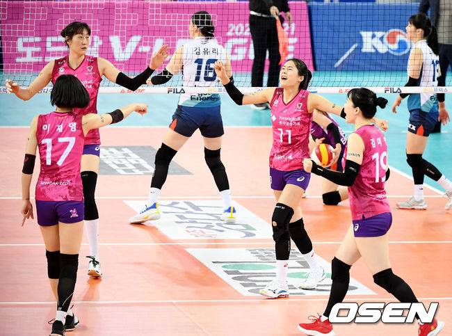 3세트를 따낸 흥국생명 선수들이 기뻐하고 있다. /youngrae@osen.co.kr