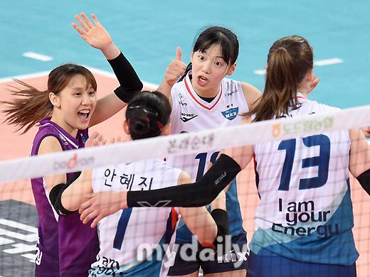 [마이데일리 = 인천 유진형 기자] GS칼텍스 유서연이 26일 오후 인천계양체육관에서 진행된 '2020-2021 V리그' 여자부, 흥국생명과 GS칼텍스의 경기에서 기뻐하고 있다.