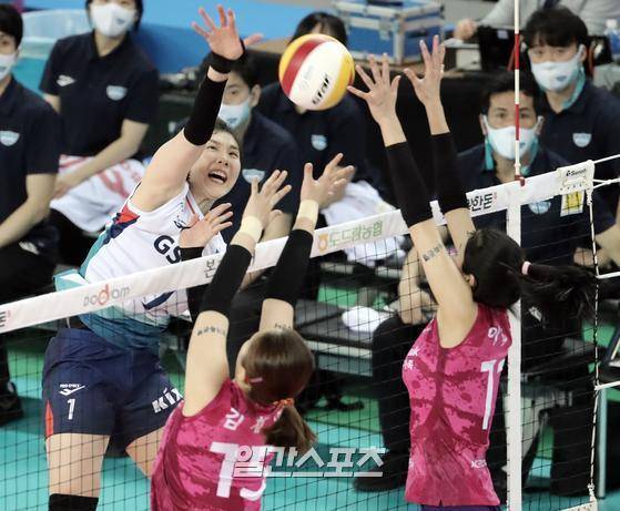 2020~2021 프로배구 V리그 여자부 흥국생명과 GS칼텍스의 경기가 26일 오후 인천 계양체육관에서 열렸다. 이소영이 강력한 스파이크 공격을 하고 있다.