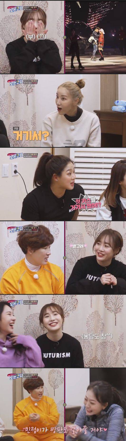 멤버들은 피겨 스케이팅 동작과 다른 점을 묻자 박소연은 "'하네스'라는 동작으로 하늘을 날기도 해, 현역때랑 확실히 다르다"고 했고, 모두 파트너랑 합을 맞추는지 궁금해했다.