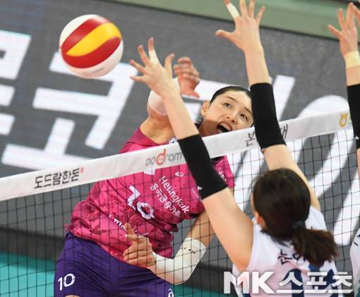 흥국생명 김연경이 스파이크를 성공시키고 있다.