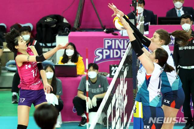 [인천=뉴시스]이윤청 기자 = 26일 인천 계양구 계양체육관에서 열린 프로배구 V리그 여자부 흥국생명과 GS칼텍스의 경기, 흥국생명 이재영이 공격하고 있다. 2021.01.26. radiohead@newsis.com