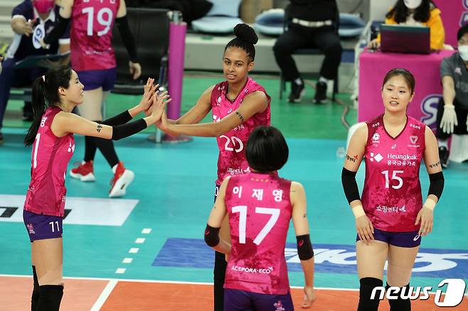 (인천=뉴스1) 황기선 기자 = 26일 오후 인천 계양체육관에서 열린 프로배구 '2020-21시즌 도드람 V리그' 여자부 흥국생명과 GS칼텍스의 경기에서 흥국생명 새 외국인선수 브루나 교체 출전하고 있다. 2021.1.26/뉴스1