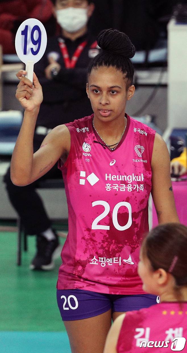 (인천=뉴스1) 황기선 기자 = 26일 오후 인천 계양체육관에서 열린 프로배구 '2020-21시즌 도드람 V리그' 여자부 흥국생명과 GS칼텍스의 경기에서 흥국생명 새 외국인선수 브루나 교체 출전하고 있다. 2021.1.26/뉴스1