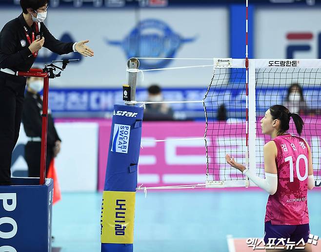 [엑스포츠뉴스 인천, 박지영 기자] 26일 오후 인천 계양체육관에서 열린 '도드람 2020-2021 V리그' 여자부 흥국생명과 GS칼텍스의 경기, 흥국생명이 세트스코어 3-1(23-25, 25-22, 25-21, 25-20)로 승리하며 5연승을 달렸다.