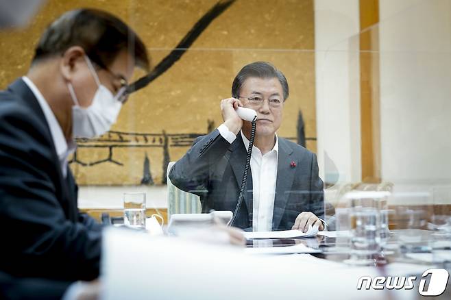 (서울=뉴스1) = 문재인 대통령이 26일 오후 청와대에서 시진핑 중국 국가주석과 통화하고 있다.(청와대 제공) 2021.1.26/뉴스1