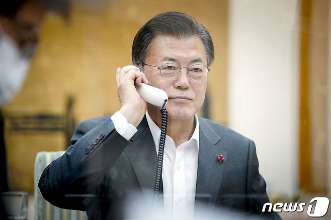 (서울=뉴스1) = 문재인 대통령이 26일 오후 청와대에서 시진핑 중국 국가주석과 통화하고 있다.(청와대 제공) 2021.1.26/뉴스1