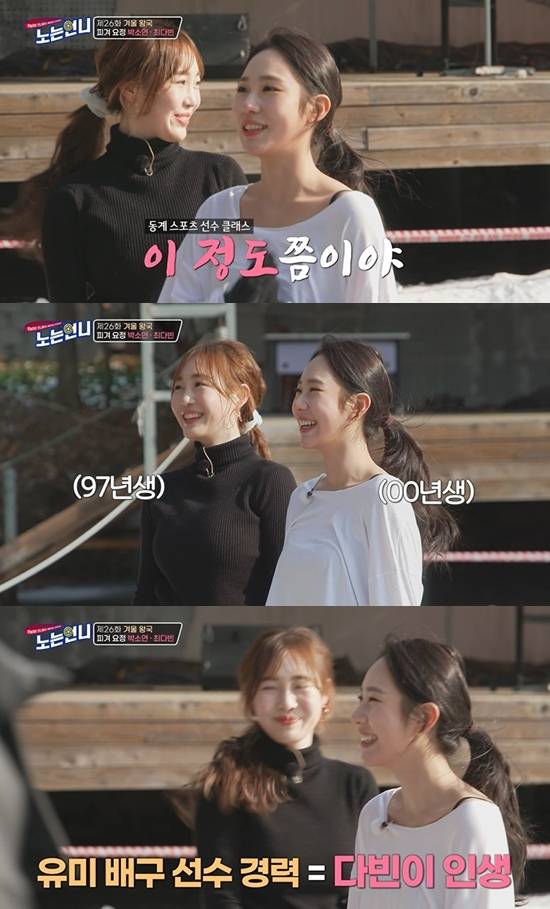 26일 방송된 티캐스트 E채널 '노는 언니'에서는 피겨 신동이라 불렸던 피겨선수 최다빈과 넘치는 끼와 화려한 퍼포먼스로 관객들에게 즐거움을 선사했던 전(前) 피겨선수 박소연이 언니들의 일일코치로 등장했다.