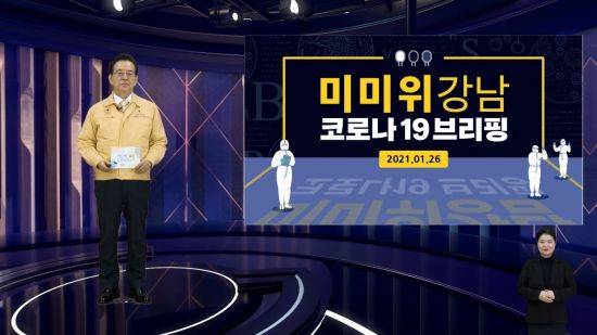 26일이 강남구가 코로나19로 비상근무체제에 돌입한 지 1년이 되는 날이다. 제가 지금 입고 있는 이 민방위복을 일상복처럼 입은 지도 1년이 됐다. 그동안 무료 검체검사, 스마트 감염병관리센터 같은 선제적인 방역시스템 마련에 앞장섰던 것처럼 앞으로도 강남구 전 직원은 코로나19 상황이 종료될 때까지 구민들의 건강안전을 위해 최선을 다하겠다. 구민 여러분께서는 일상 속 마스크 착용과 거리두기 같은 기본 방역수칙 준수만이 코로나19로부터 우리 자신을 지킬 수 있는 방법이라는 점을 꼭 기억해주시길 당부 드린다.