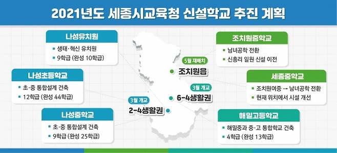 세종시교육청, 올해 유-초-중-고 4개교 신설‧개교