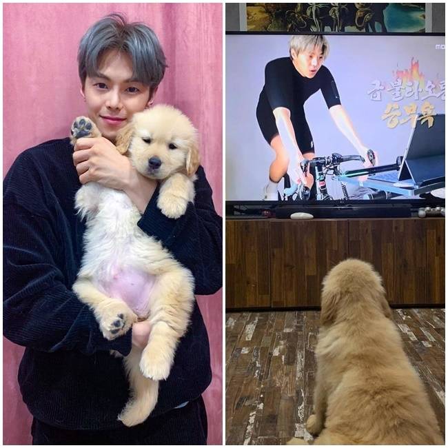 공개된 사진 속 박은석 강아지 몰리는 TV앞에 서서 MBC '나 혼자 산다'에 출연 중인 박은석을 보고 있는 모습이다.