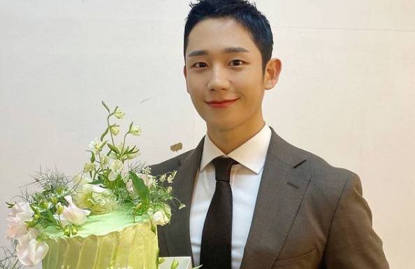 사진 속 정해인은 한손에 케이크를 든 채 카메라를 응시하고 있는 모습. 단정한 슈트를 입고 미소를 짓고 있는 정해인은 완벽한 슈트핏과 함께 자체발광 조각 미남 비주얼을 뽐내며 눈길을 사로잡고 있다. 잘생김과 스위트한 미소로 여심을 저격하며 감탄을 유발한다.