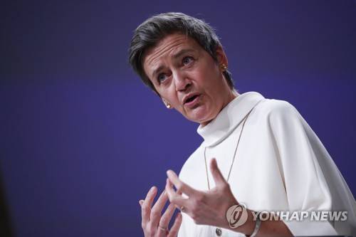 epa08966708 European Commissioner for A Europe Fit for the Digital Age Margrethe Vestager speaks during a news conference on European project in battery value chain at the European Commission headquarters in Brussels, Belgium, 26 January 2021. The European Union has approved 2.9 billion euro (3.53 billion US dollar) in subsidies from 12 member countries for a second pan-European project to develop the bloc's electric battery industry and move away from its reliance on Asian imports. EPA/FRANCISCO SECO / POOL