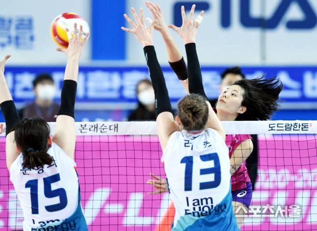 흥국생명의 이재영이 26일 인천 계양체육관에서 진행된 GS칼텍스와의 경기에서 강타로 공격하고있다. 2021.01.26. 김도훈기자 dica@sportsseoul.com