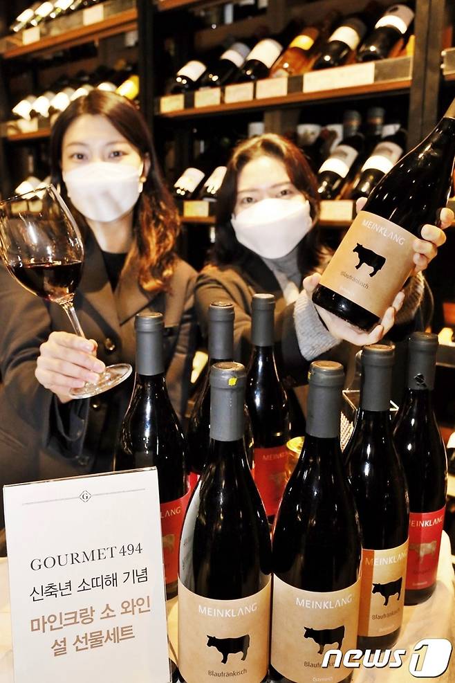 (서울=뉴스1) = 갤러리아백화점은 신축년 하얀 소의 해를 맞아 소 모양 로고가 그려진 ‘마인크랑 소 와인 세트’를 선보인다고 27일 전했다.