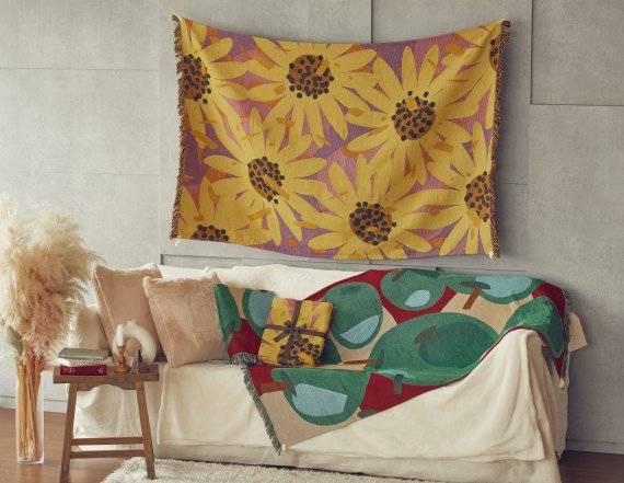 이번 굿즈를 그림이나 액자가 아닌 블랭킷으로 출시하게 된 가장 큰 이유는 인테리어 시 활용도가 높기 때문이다. 블랭킷의 4개 모서리 끝 단에는 각각 고리가 달려있어서 벽면 데코 연출에 용이하고, 카펫이나 쇼파 커버 등으로도 사용할 수 있다. 그 외에도 담요로 쓸 때는 엄지손가락을 끼울 수 있어 야외에서 사용하기에 좋다.